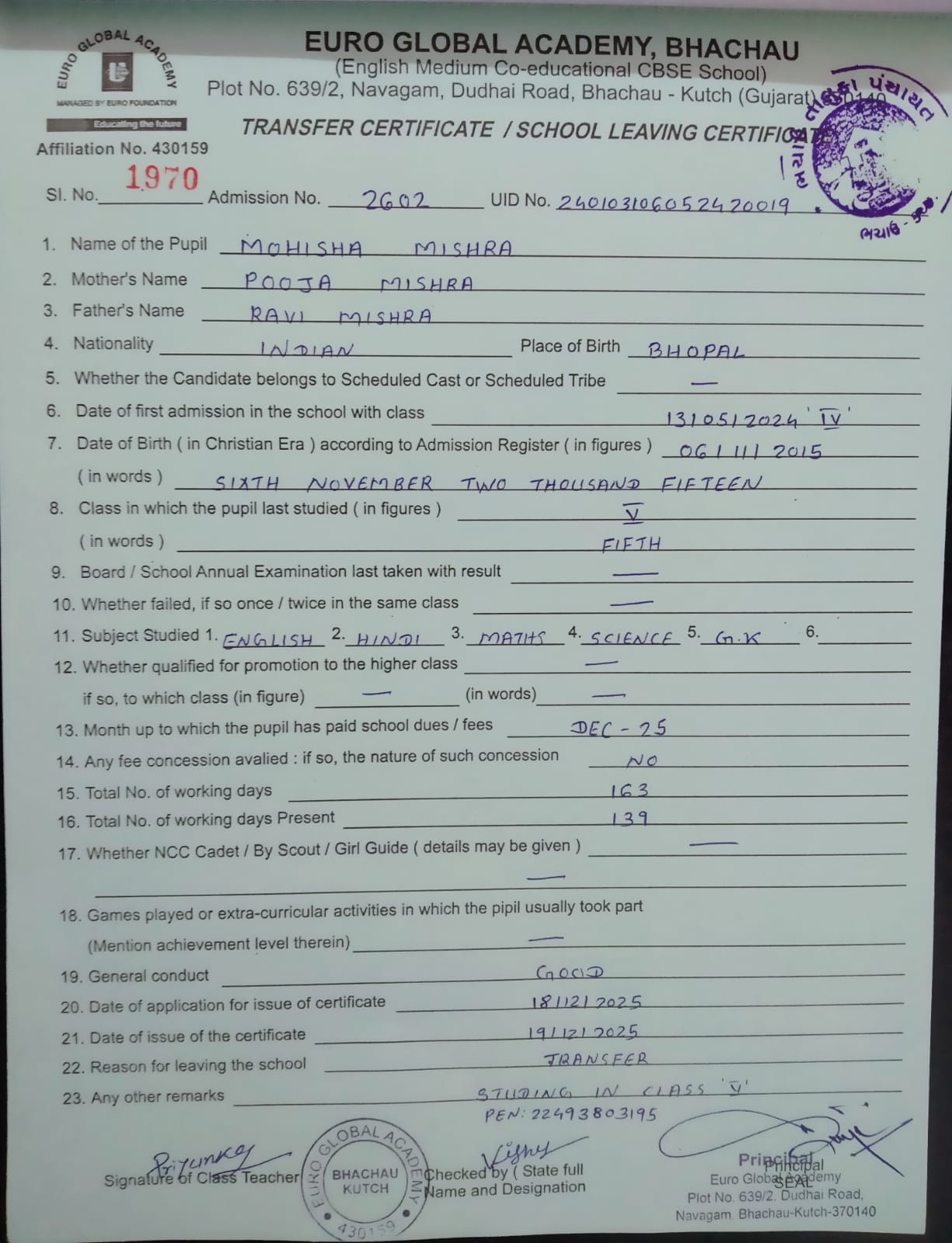 | 1970 | 2602 | MOHISHA MISHRA | V | 19/12/2025 | VIEW |