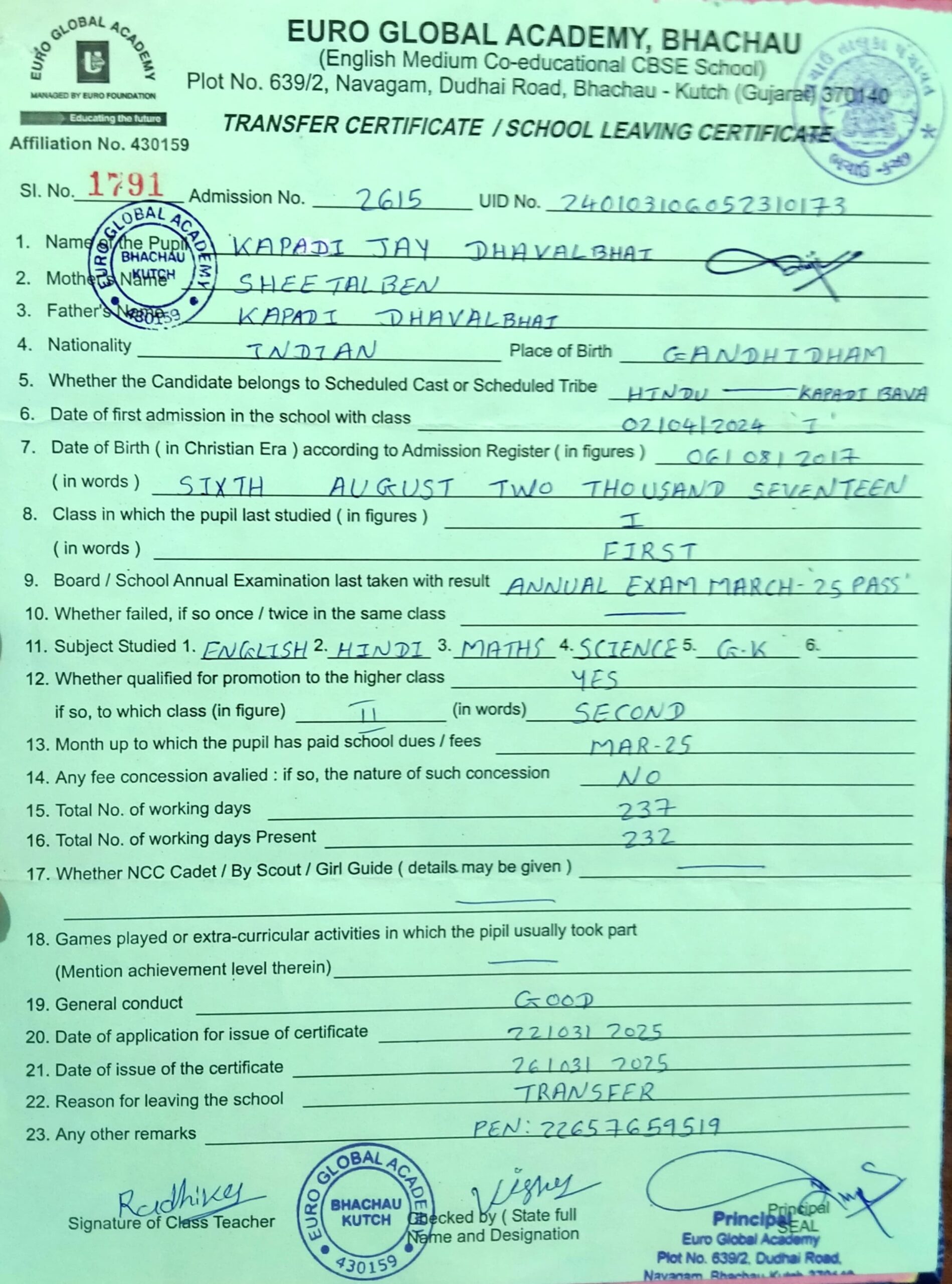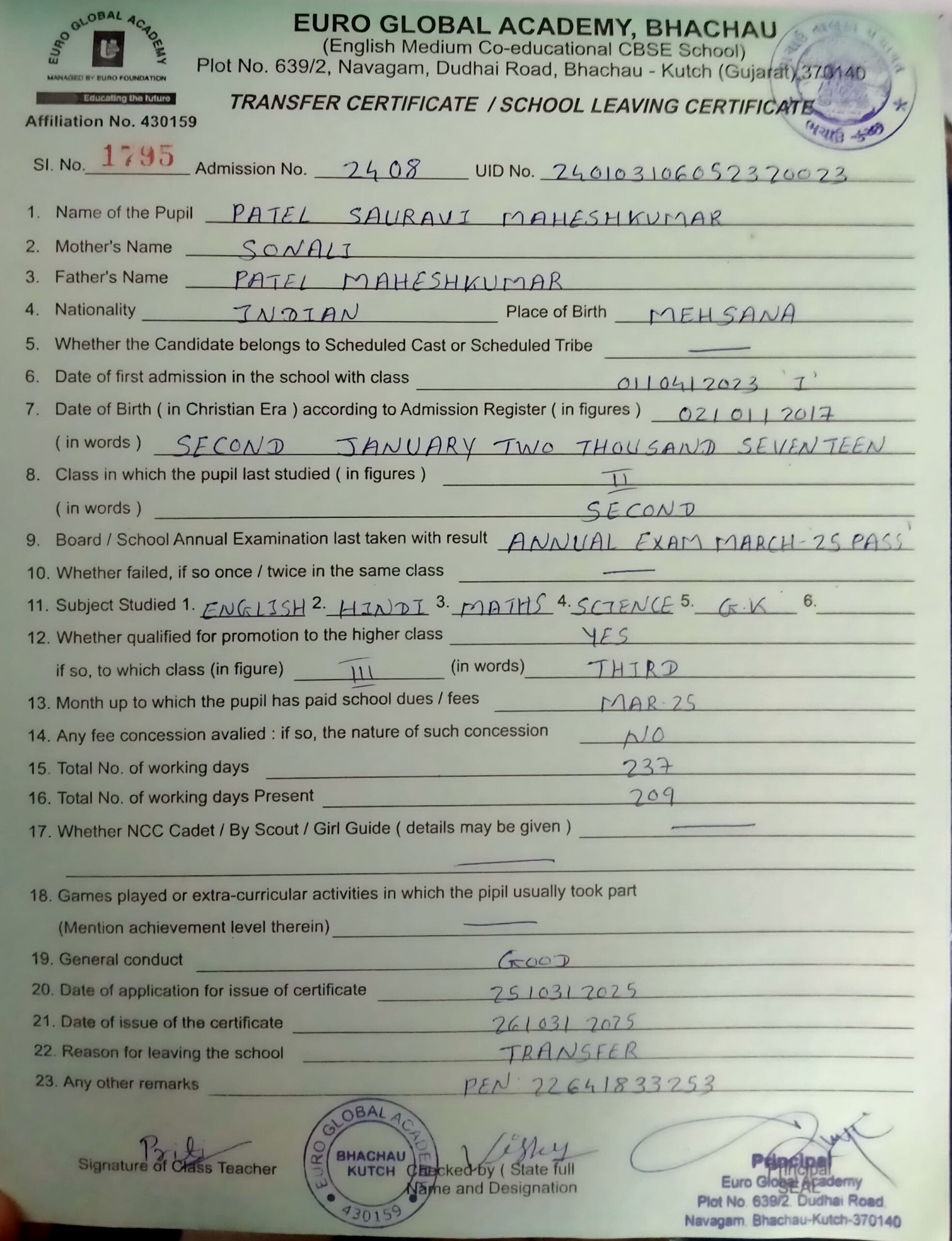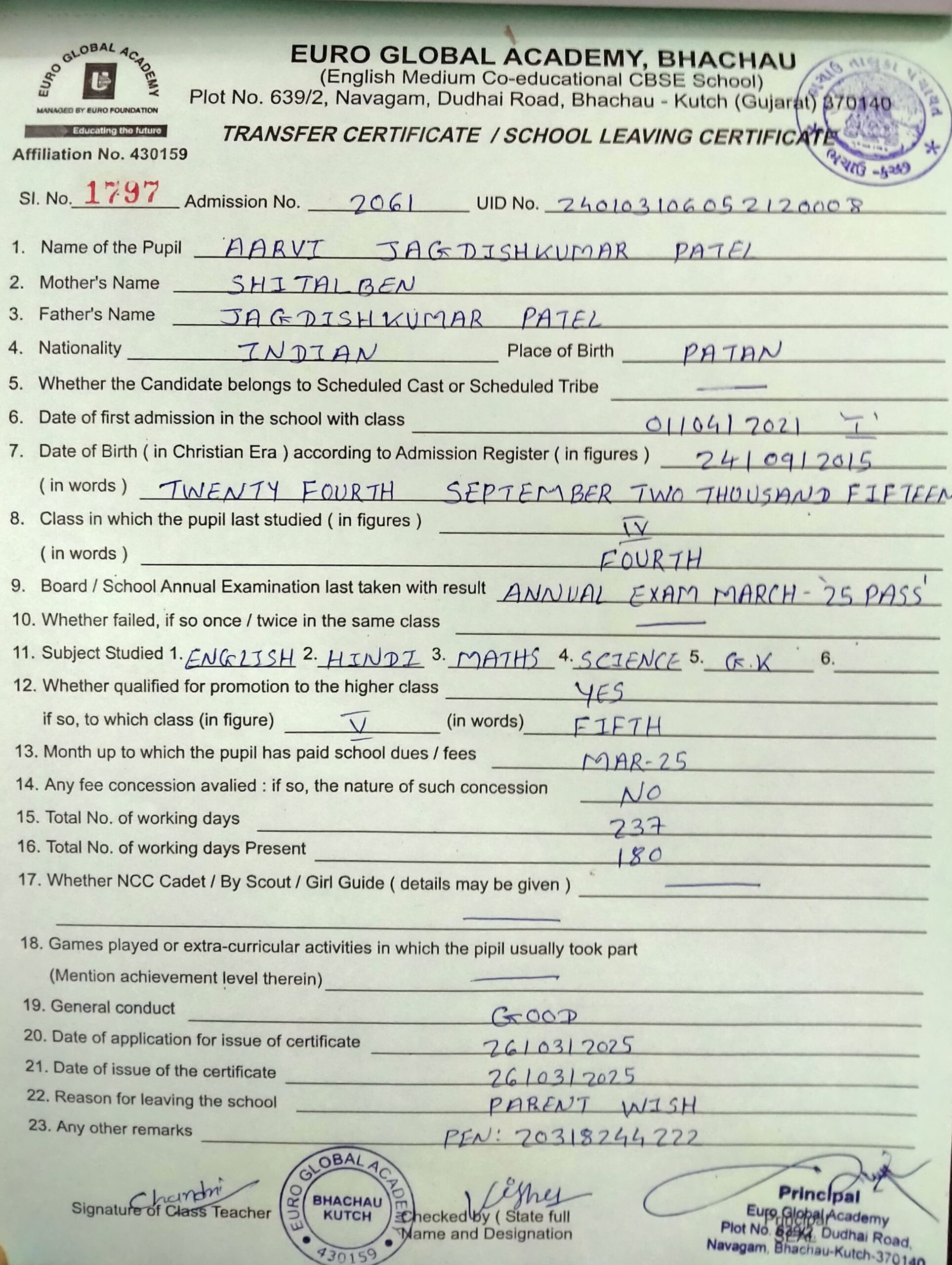 | 1785 | 2297 | JAYKUMAR CHANDAT | VI | 26/03/2025 | VIEW |