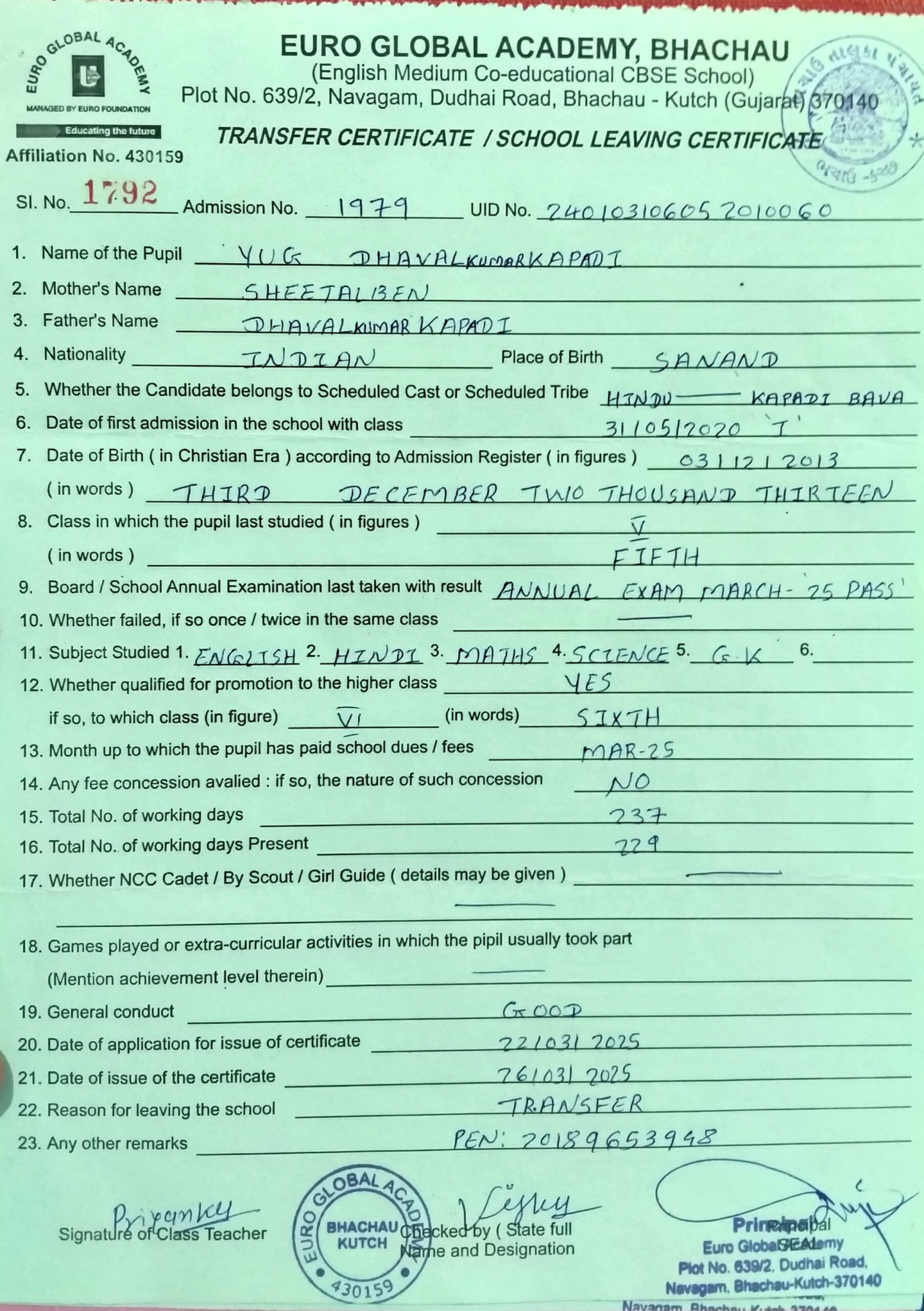 | 1792 | 1979 | YUG DHAVALKUMAR KAPADI | V | 26/03/2025 | VIEW |